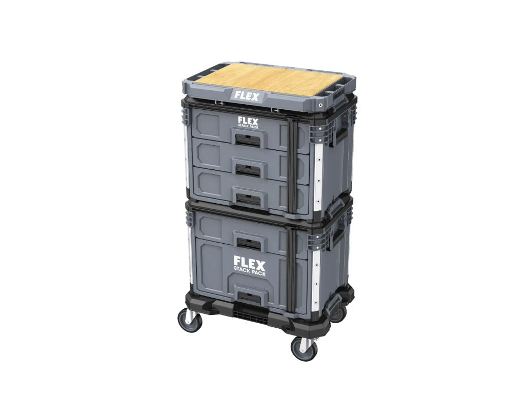 S robustním skladovacím a transportním systémem STACK PACK lze nářadí a příslušenství snadno přepravovat na stavbu. Boxy z nárazuvzdorného plastu s rohy vyztuženými hliníkem chrání nářadí a příslušenství před nejtěžšími podmínkami na stavbě. Boxy jsou vybaveny odolnou kovovou západkou, přídavná madla zajišťují flexibilní a pohodlnou manipulaci. Zámkové rychloupínací západky poskytují rychlé, flexibilní a snadné připojení každého boxu, což umožňuje konfiguraci úložného systému podle individuálních potřeb. Sada sestává z pracovní desky, dvou zásuvkových boxů se 3 a 2 zásuvkami a vozíku. Ideální pro uložení příslušenství a malých dílů. Obsah je vždy perfektně roztříděn a na dosah ruky.